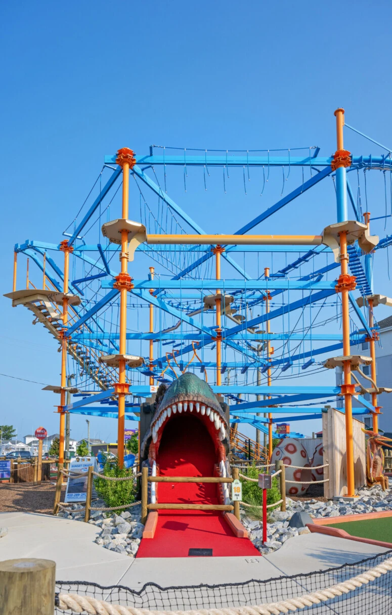 Fisher Architecture led architectural design services for an innovative family entertainment destination in Ocean City, combining a themed mini-golf course with an elevated ropes course.
