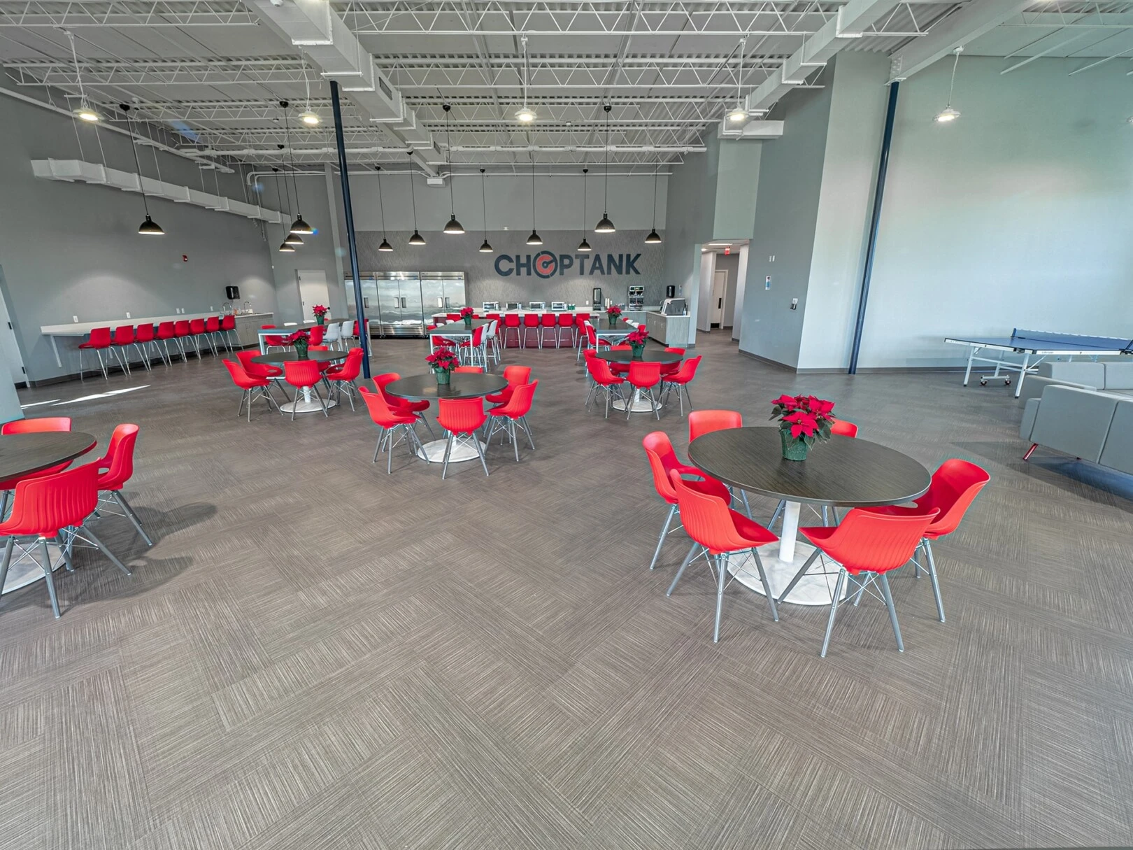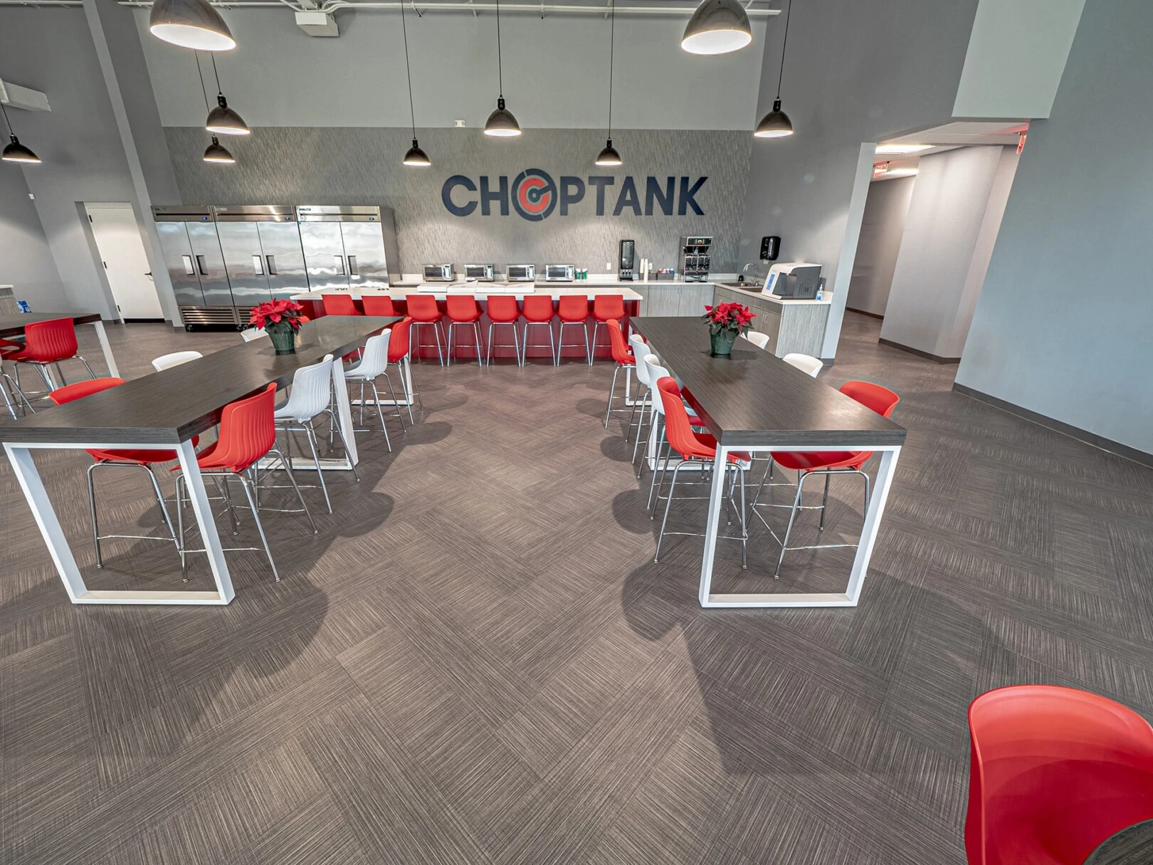 Our team provided architectural and interior design services for this 25,000 square foot commercial building located in Easton, MD.We made sure to create a design that incorporated Choptank’s brand while also allowing for a fun workplace. Some exciting features include a team building room, an outdoor area, and an artificial turf area with mini golf and corn hole where employees can take a break and bond.